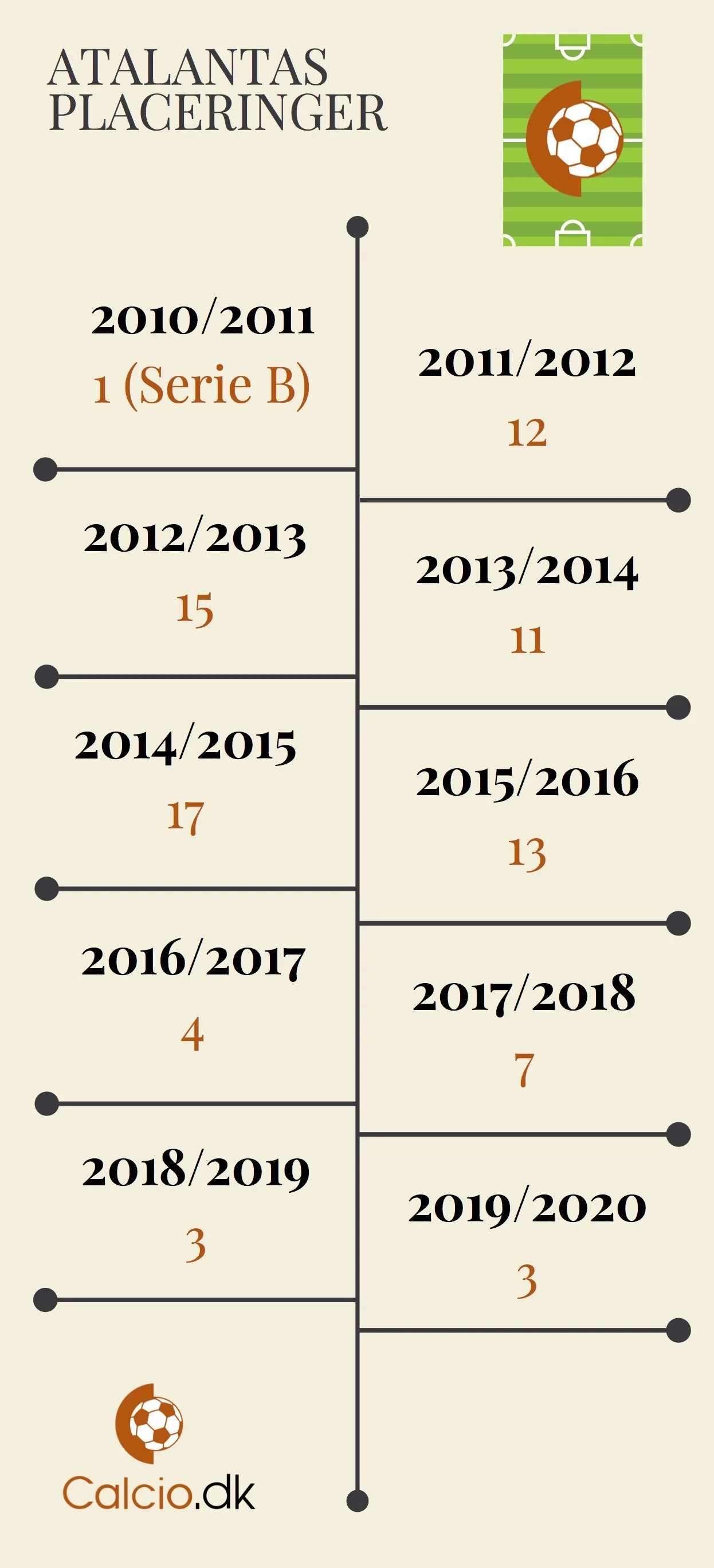 Bedste placeringer i Serie A er de to tredjepladser i 2018/19 og 2019/20.